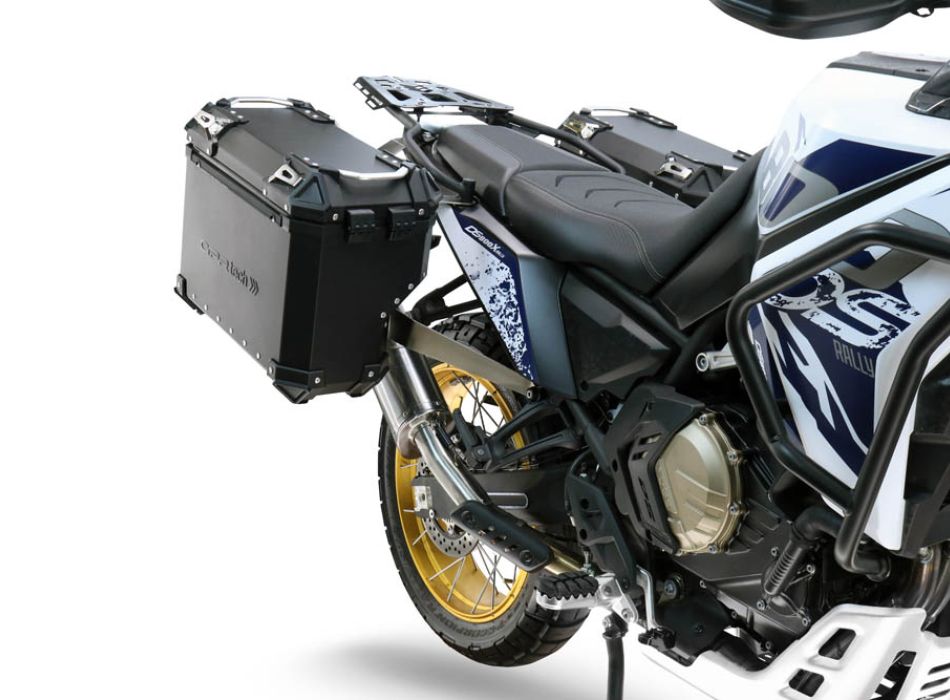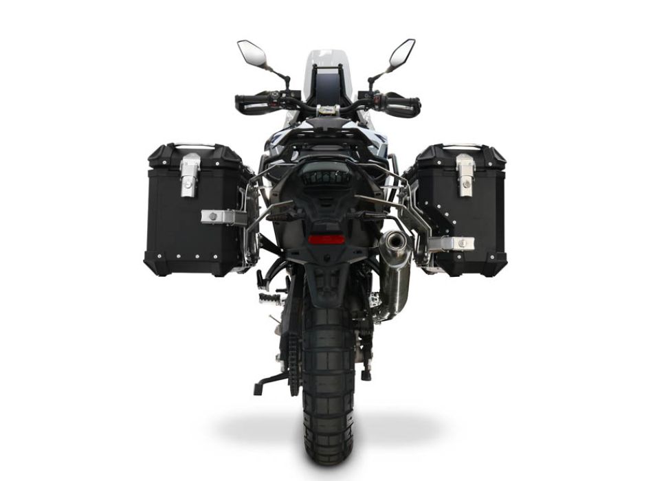 Incluye el portaequipajes y los herrajes necesarios para su instalación. ATENCIÓN: Los soportes laterales (bastidores) deben usarse únicamente con las maletas instaladas. No pueden considerarse ni utilizarse como protección contra impactos laterales con las maletas desmontadas. Por lo tanto, GPR no se responsabiliza del mal uso del producto.