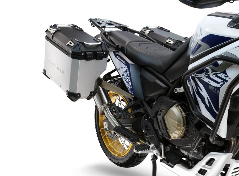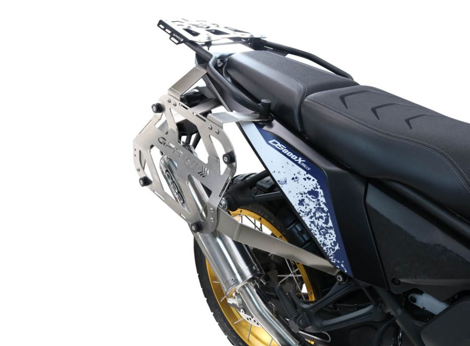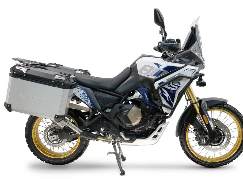Incluye el portaequipajes y los herrajes necesarios para su instalación. ATENCIÓN: Los soportes laterales (bastidores) deben usarse únicamente con las maletas instaladas. No pueden considerarse ni utilizarse como protección contra impactos laterales con las maletas desmontadas. Por lo tanto, GPR no se responsabiliza del mal uso del producto.